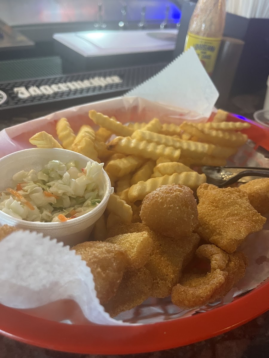 We love to try the food that is recommended by the staff. Julie suggested the catfish - I normally do not like catfish - but they made it sound wonderful so we tried it. The fish was so good. Perfect batter. My husband loves catfish and feels this was the best he ever had. The food here is not your normal bar fare. Tasted fresh and very flavorful. Julie was very friendly and chatty. Troy (owner) was very personable and he seems to love what he does. Friendly local crowd Stop in and try the full bar and kitchen. I hope you enjoy it as much as we did.